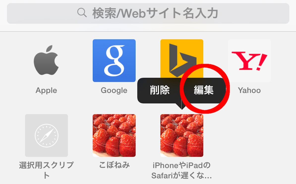 3.続いて、先ほど保存したブックマークを長押しし、「編集」をタップします。
